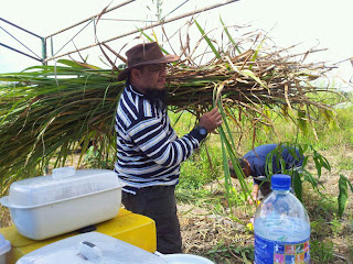 Zunidi memikul rumput jenis alfafa yang akan ditanam semula